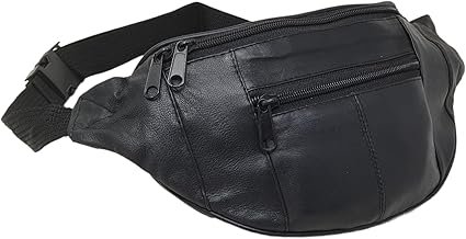 RAS Real Leather Bum Bag for Men & Women – Medium Travel Waist Bag with Multiple Zipped Pockets, Adjustable Strap – Ideal for Holiday, Festivals, Dog Walking – Model 1013 (Black)